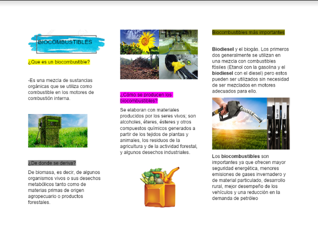 Realizamos una infografia sobre el tema que a cada equipo le toco, mi tema fueron los biocombustibles, la infografia es la siguiente: